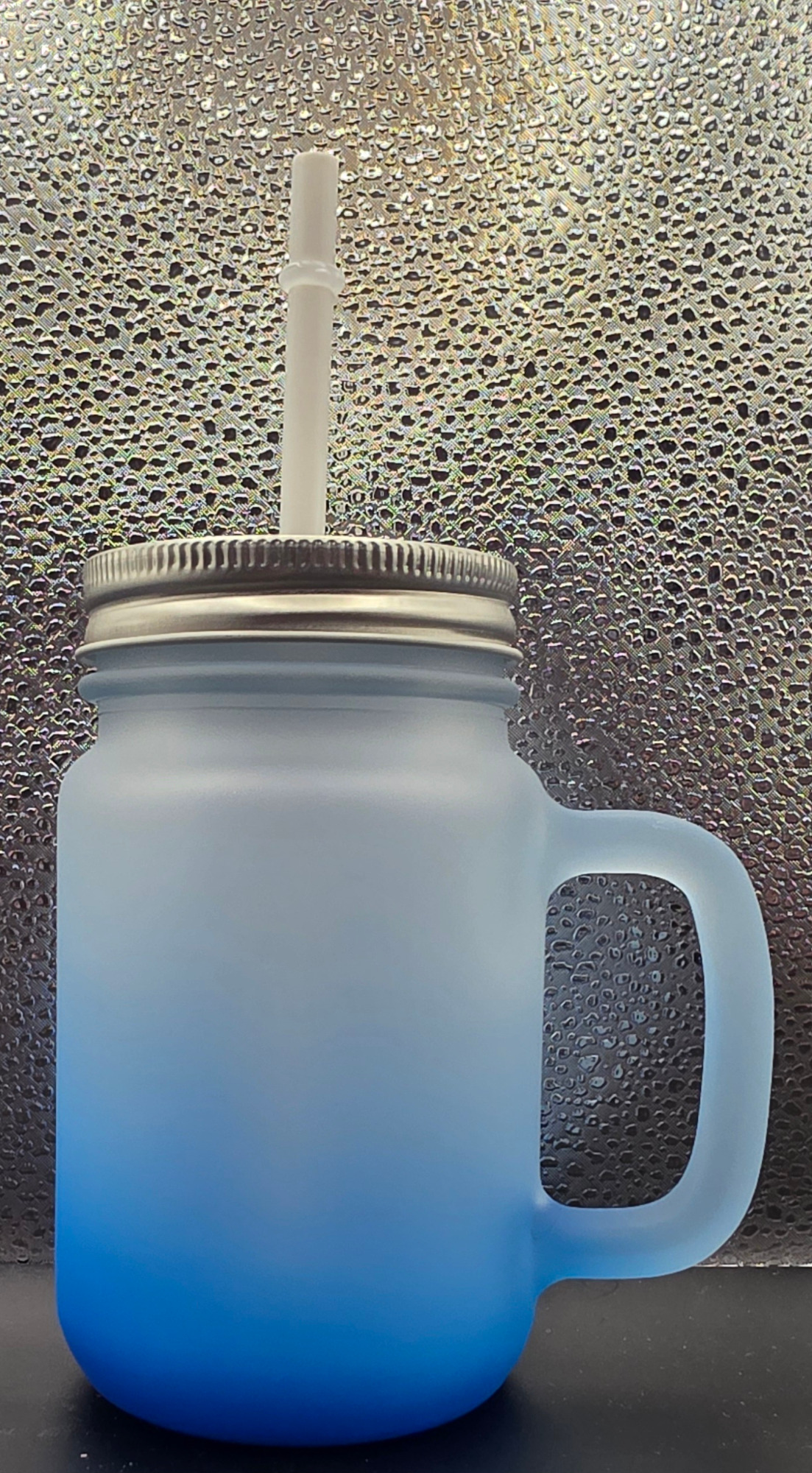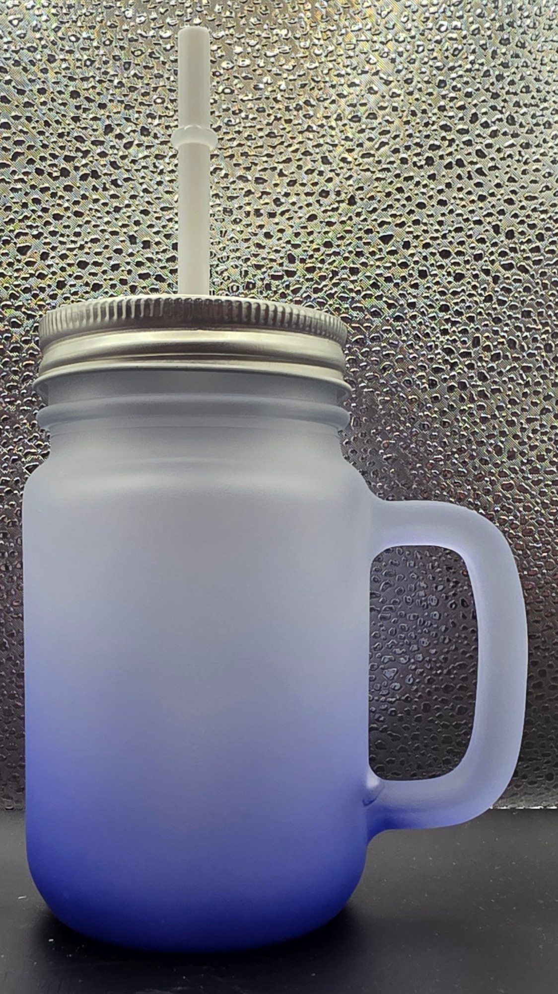 Glas Becher mit Strohhalm 350ml Dunkelblalauu